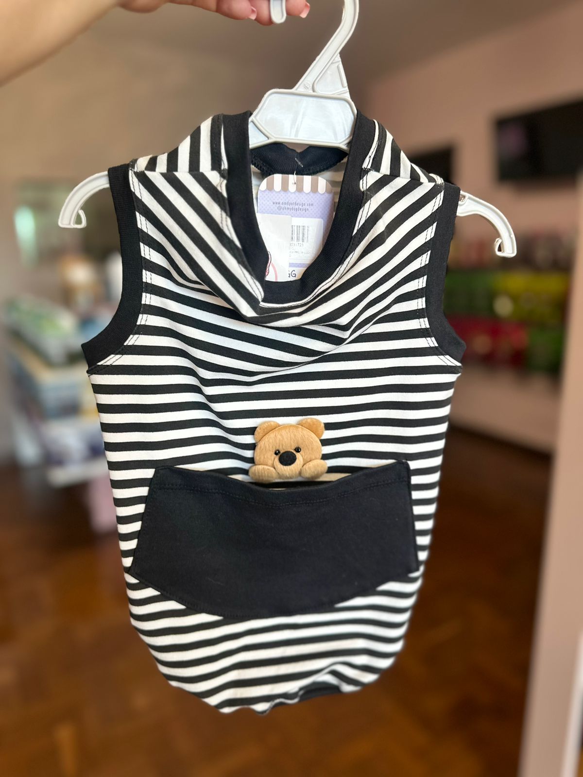 Com Ursinho e Bolso, Tecido:52% Algodão e 48% Poliester
