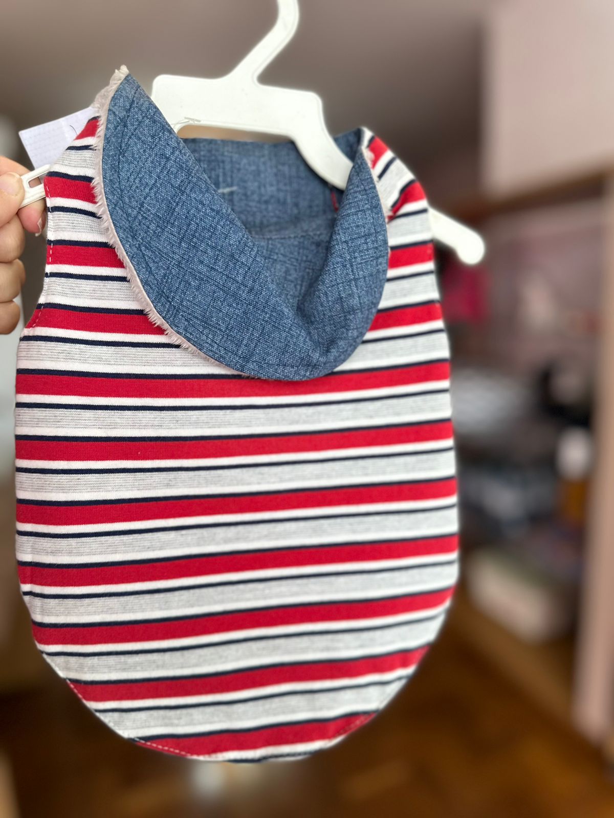 Casaco Em Algodão e Poliester, Vermelho Listrado.