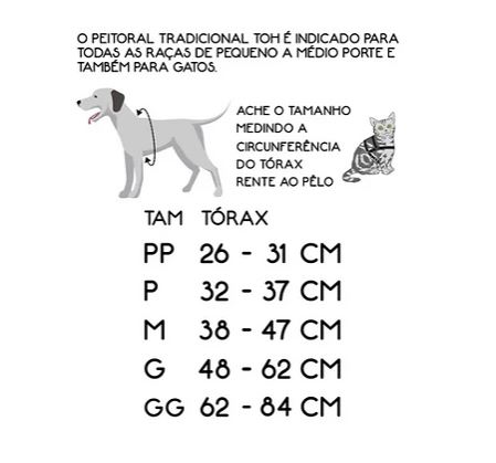 Peitoral modelo Tradicional TOH, estampa exclusiva, fita de poliéster ultra-soft super confortável, fecho e regulador em nylon para maior segurança e resistência, Peitoral de fácil regulagem, Guia com mosquetão exclusivo, mais seguro e prático do mercado e o modelo mais vendido no Mundo, meia-lua e mosquetão de zamac não enferrujam, além de ter base giratória, para movimentos livres, costuras em nylon mais resistentes garantindo a segurança total dos acessórios.