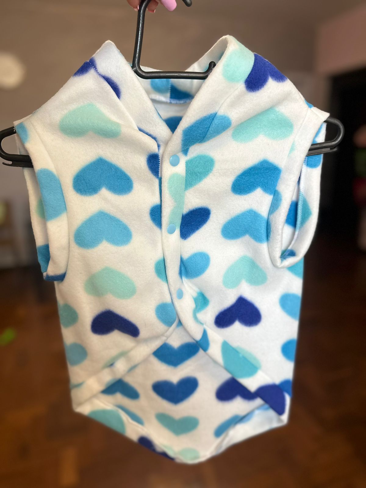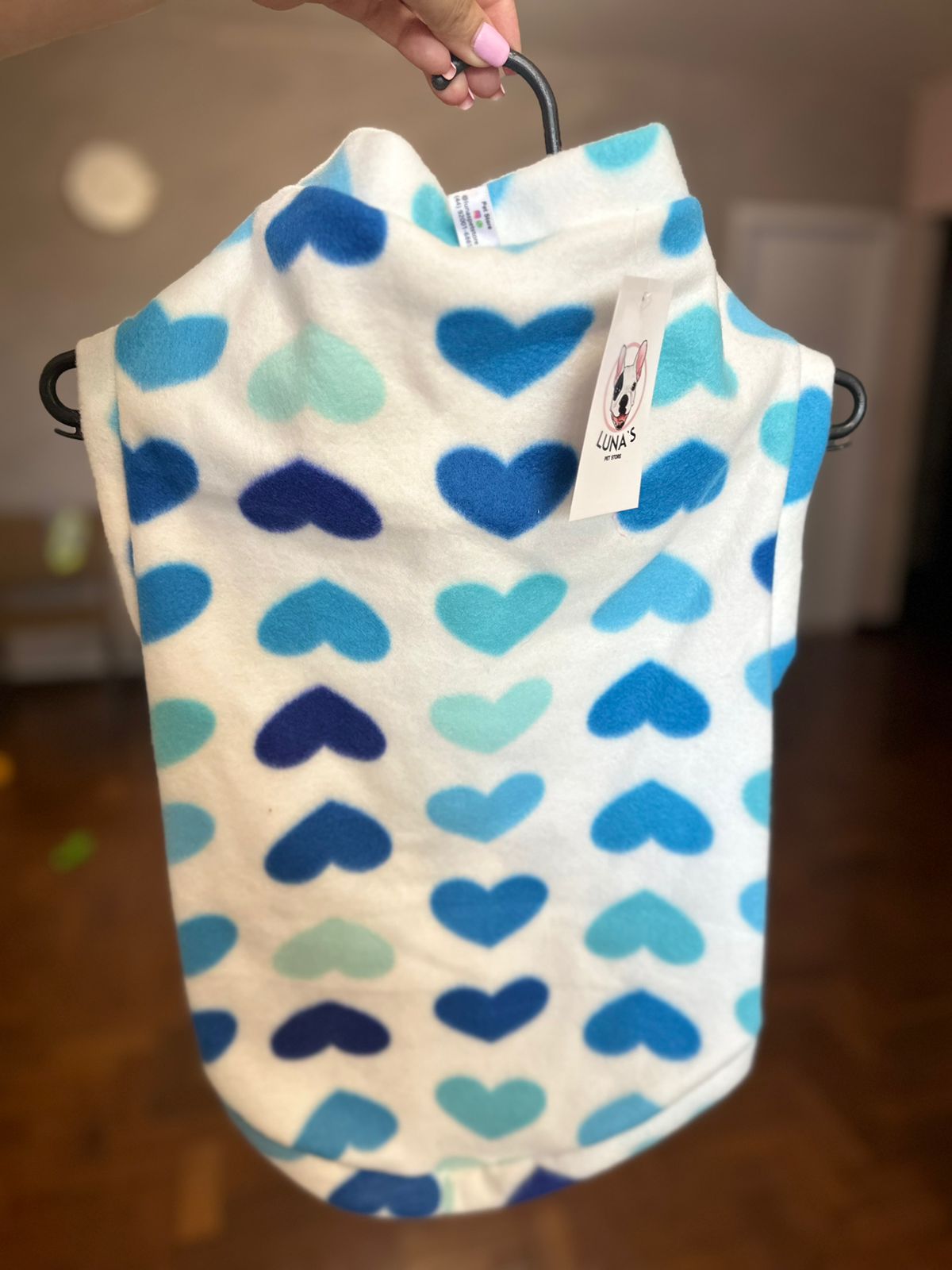 Estampa Branca com Corações Azul, feito em soft e microsoft suuuper macio e quentinho!